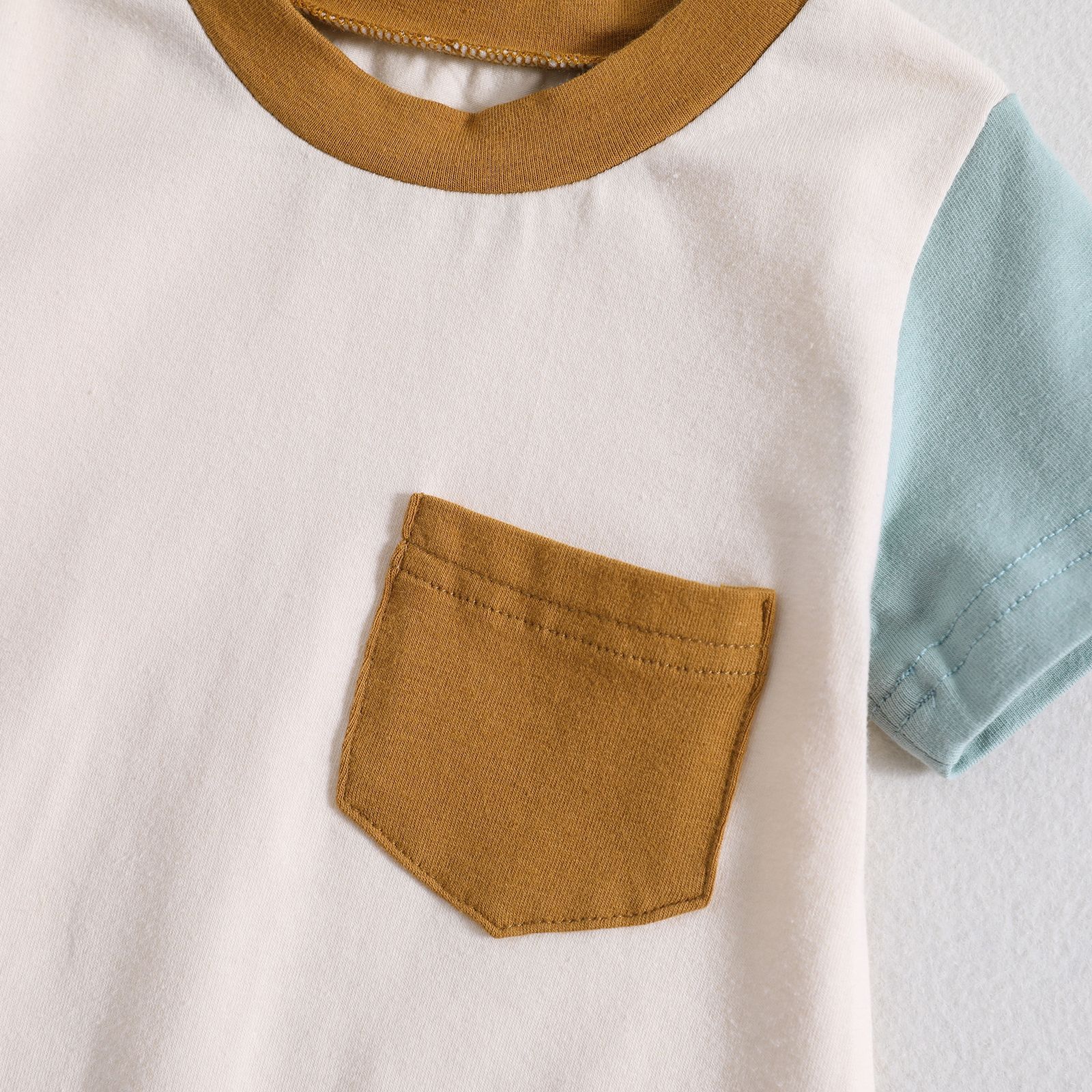 Summer Baby Jumpsuit Three-dimensional Color Matching Designed for active infants and toddlers, this summer jumpsuit combines practical comfort with eye-catching style. The three-dimensional color-blocking design features coordinated hues in light green, army green, and blue, creating visual interest while maintaining a cohesive aesthetic. Crafted from soft cotton fabric, the long-sleeve climbing style provides gentle coverage and freedom of movement for developing babies. Available in five size options (60cm, 70cm, 80cm, 90cm, and 100cm) to accommodate growing children. The convenient pullover closure makes dressing quick and effortless. The relaxed fit supports natural movement during play and exploration, while the breathable cotton composition ensures comfort throughout warm weather months. Please note that Asian sizing typically runs one to two sizes smaller than European and American standards—selecting the larger size is recommended if you fall between two measurements. Allow for minor variations of 2-3cm due to manual measurement processes. Colors may appear slightly different across devices compared to product images. Each purchase includes one jumpsuit.